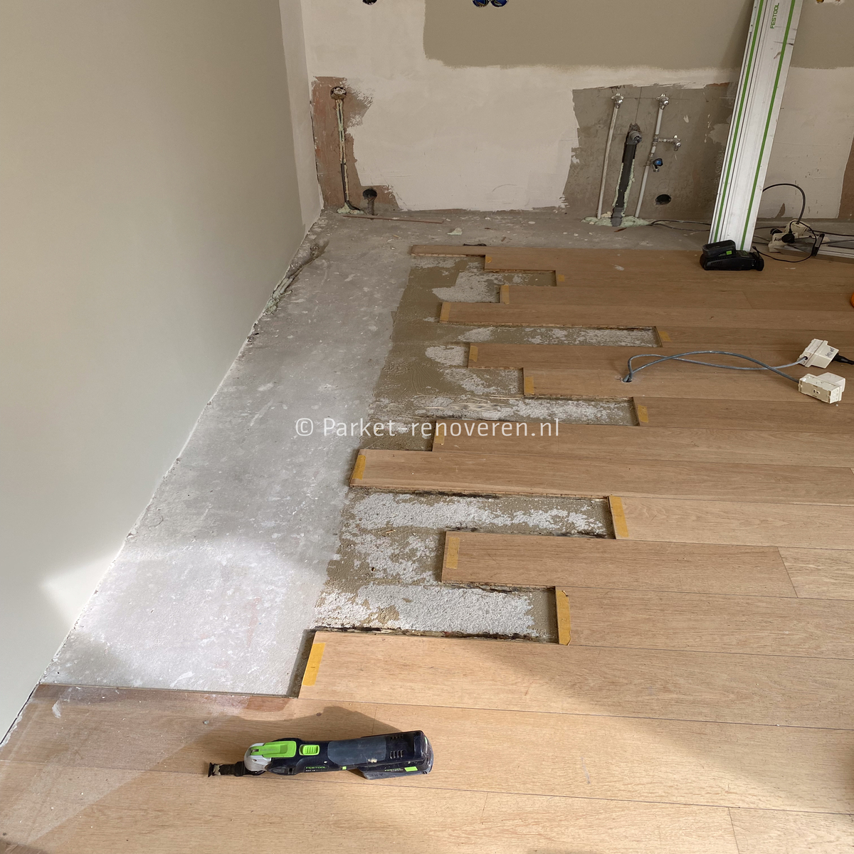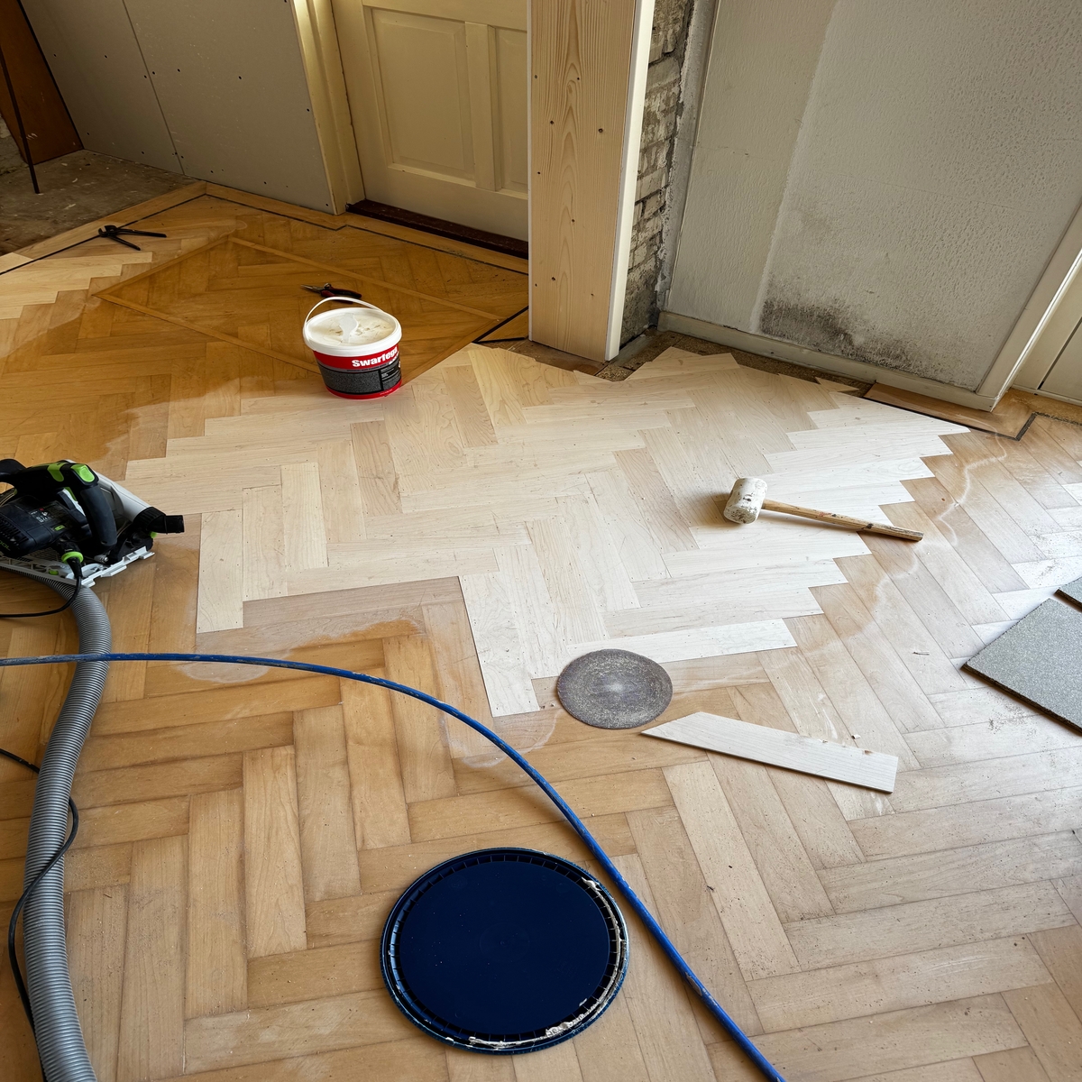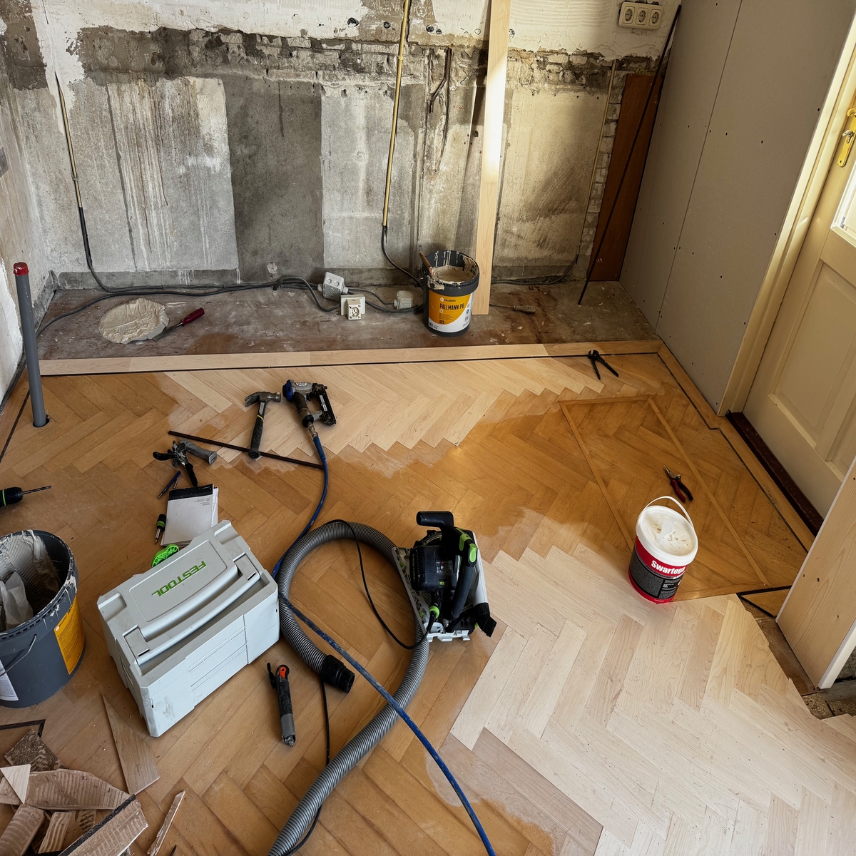 Bij het aanhelen van parket zorgen we ervoor dat beschadigde of ontbrekende delen van uw vloer naadloos worden hersteld. We gebruiken houtsoorten en legpatronen die perfect aansluiten bij het bestaande parket, zodat de overgang onzichtbaar is. Ideaal bij renovaties, uitbreidingen of herstellingen na schade.