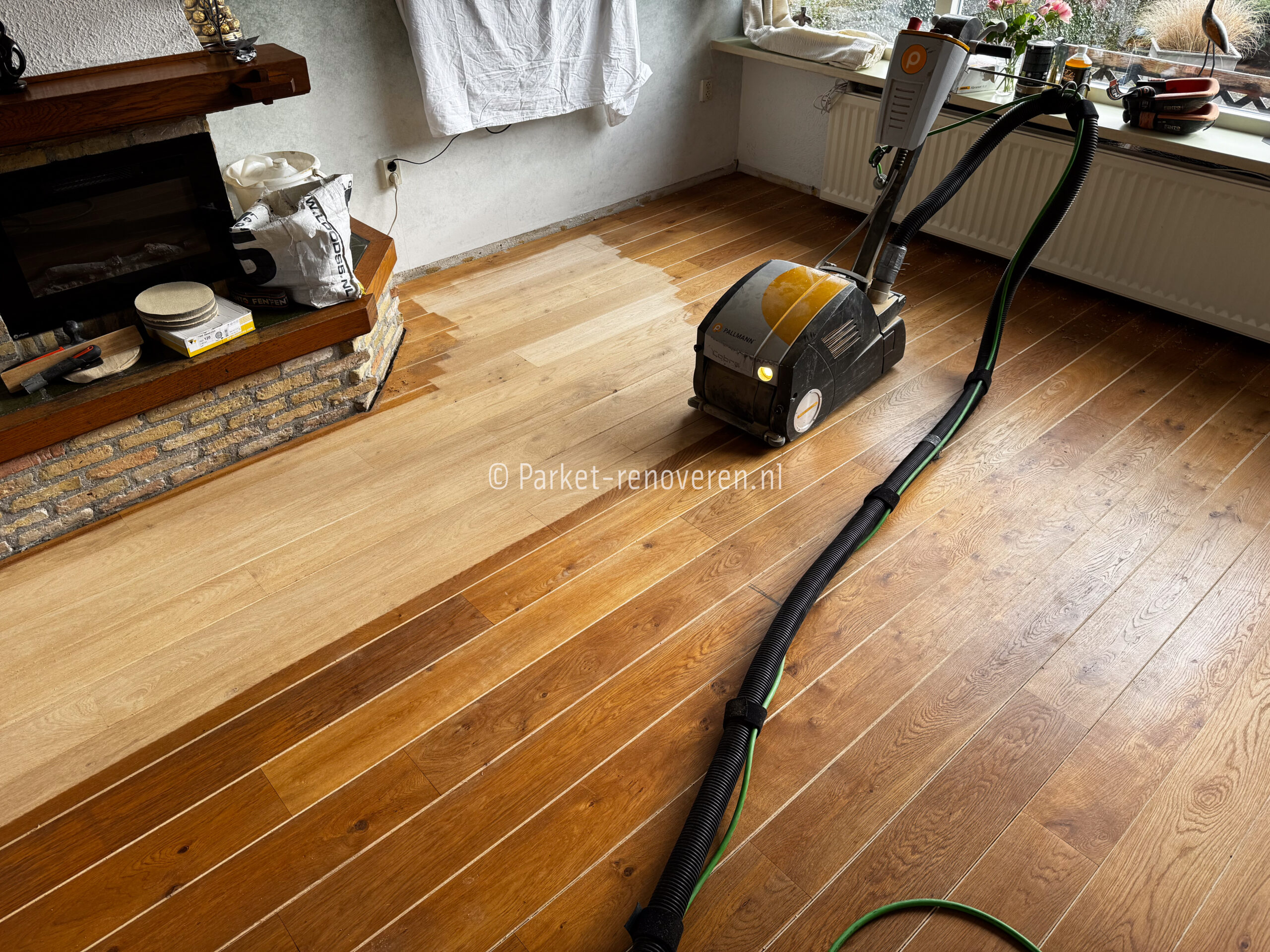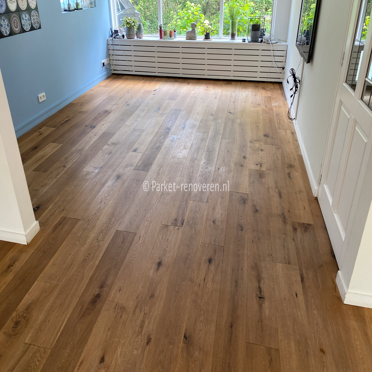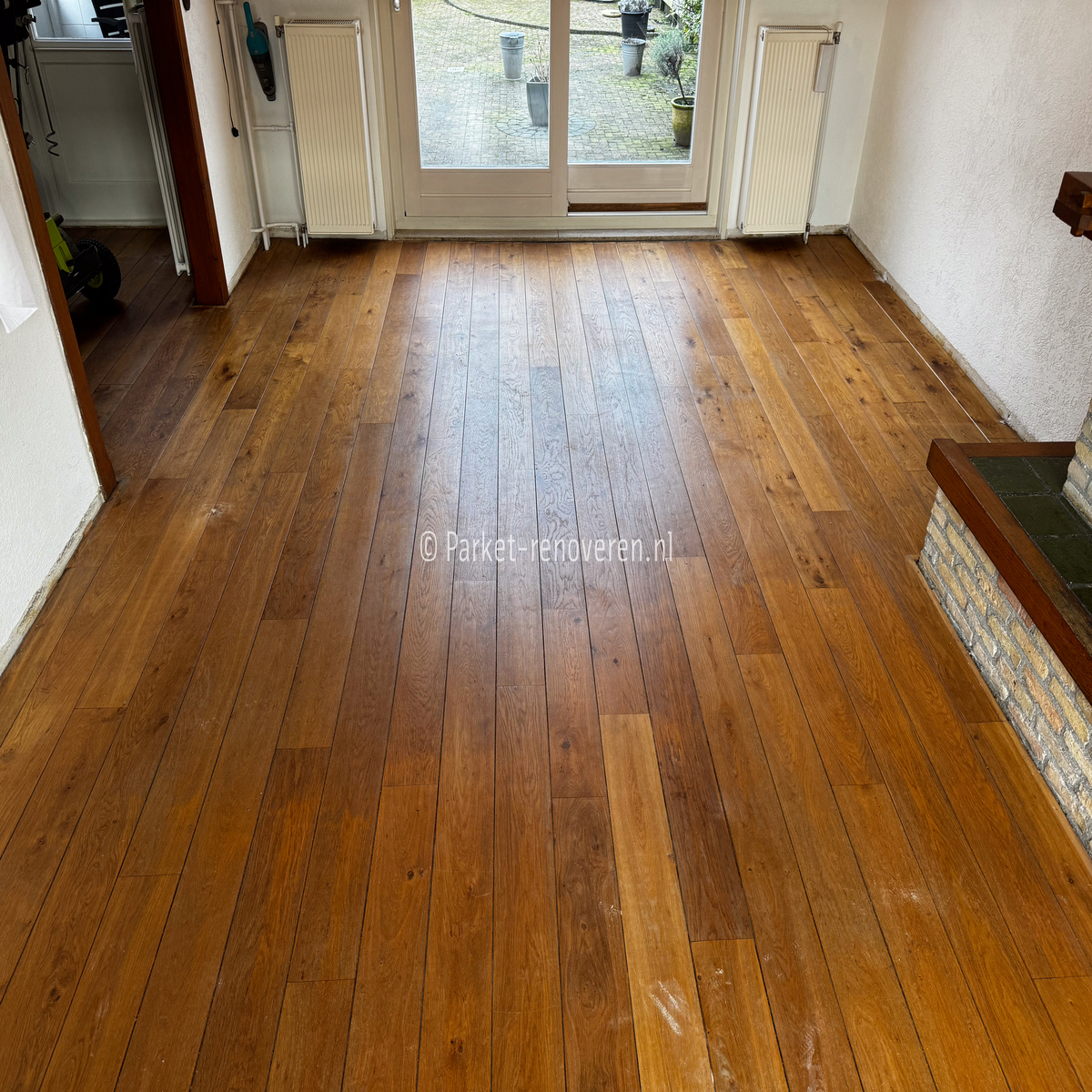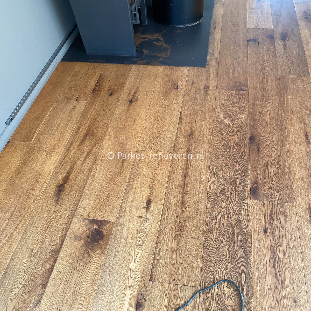 Bij schuren en oliën brengen we de natuurlijke schoonheid van het hout opnieuw tot leven. Na het schuren behandelen we de vloer met een hoogwaardige olie die diep in het hout dringt en het beschermt van binnenuit. Dit zorgt voor een warme, matte uitstraling en eenvoudig onderhoud.