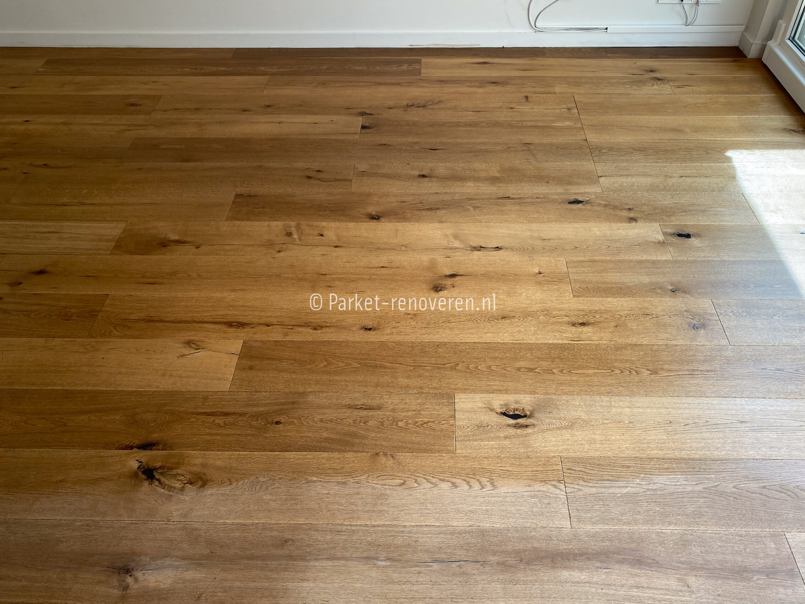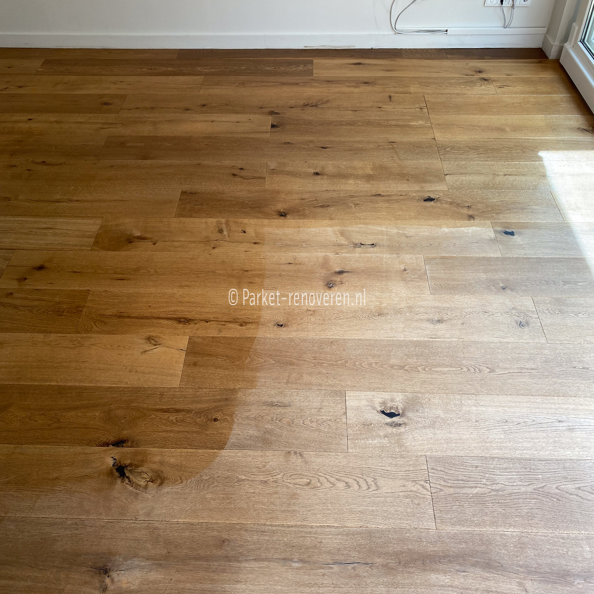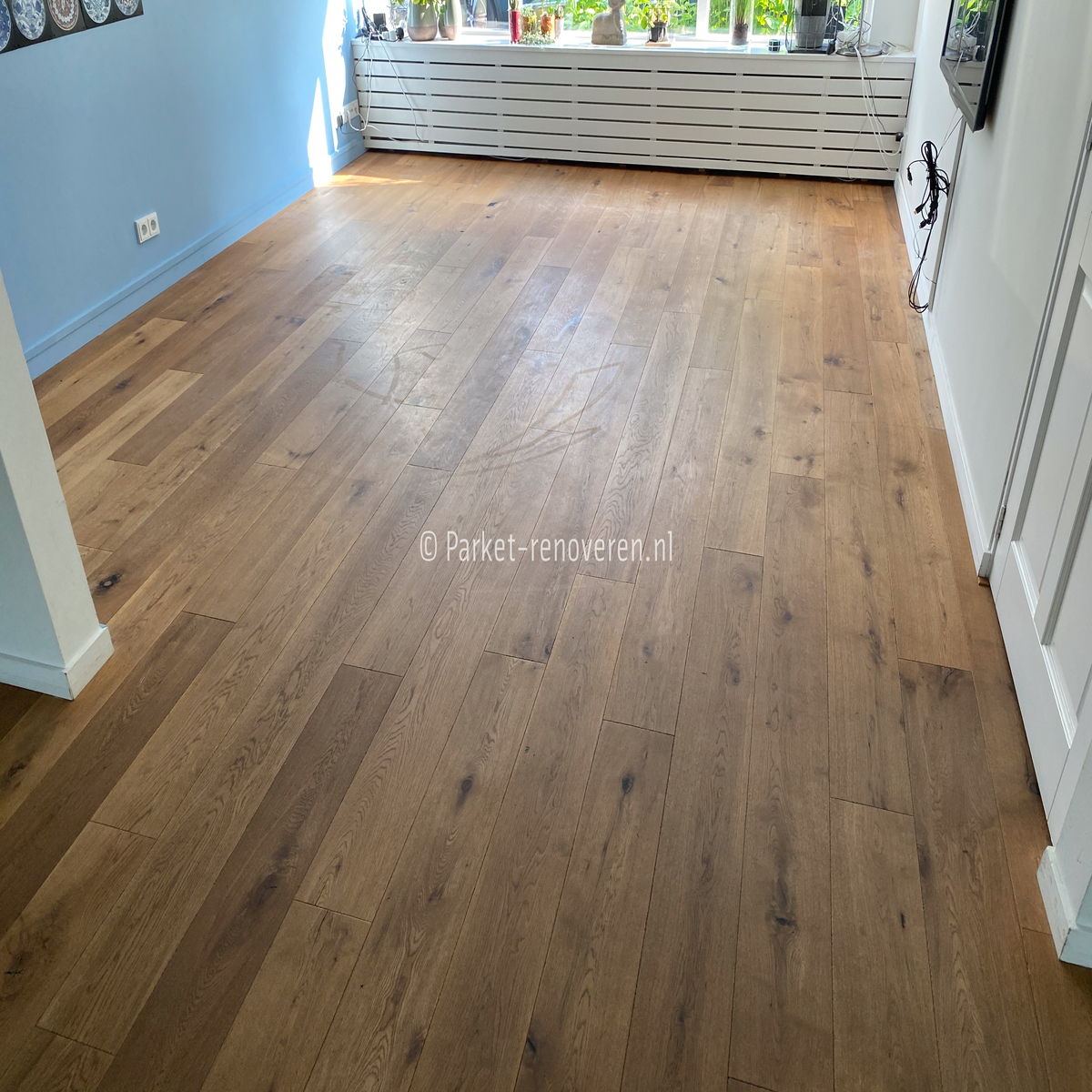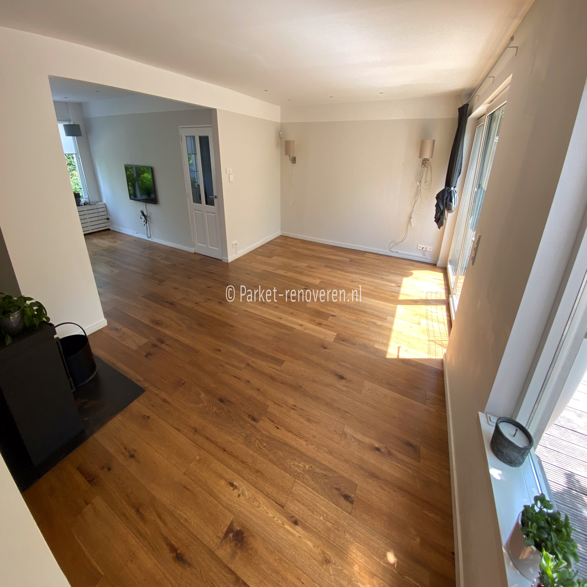 Bij schuren en oliën brengen we de natuurlijke schoonheid van het hout opnieuw tot leven. Na het schuren behandelen we de vloer met een hoogwaardige olie die diep in het hout dringt en het beschermt van binnenuit. Dit zorgt voor een warme, matte uitstraling en eenvoudig onderhoud.