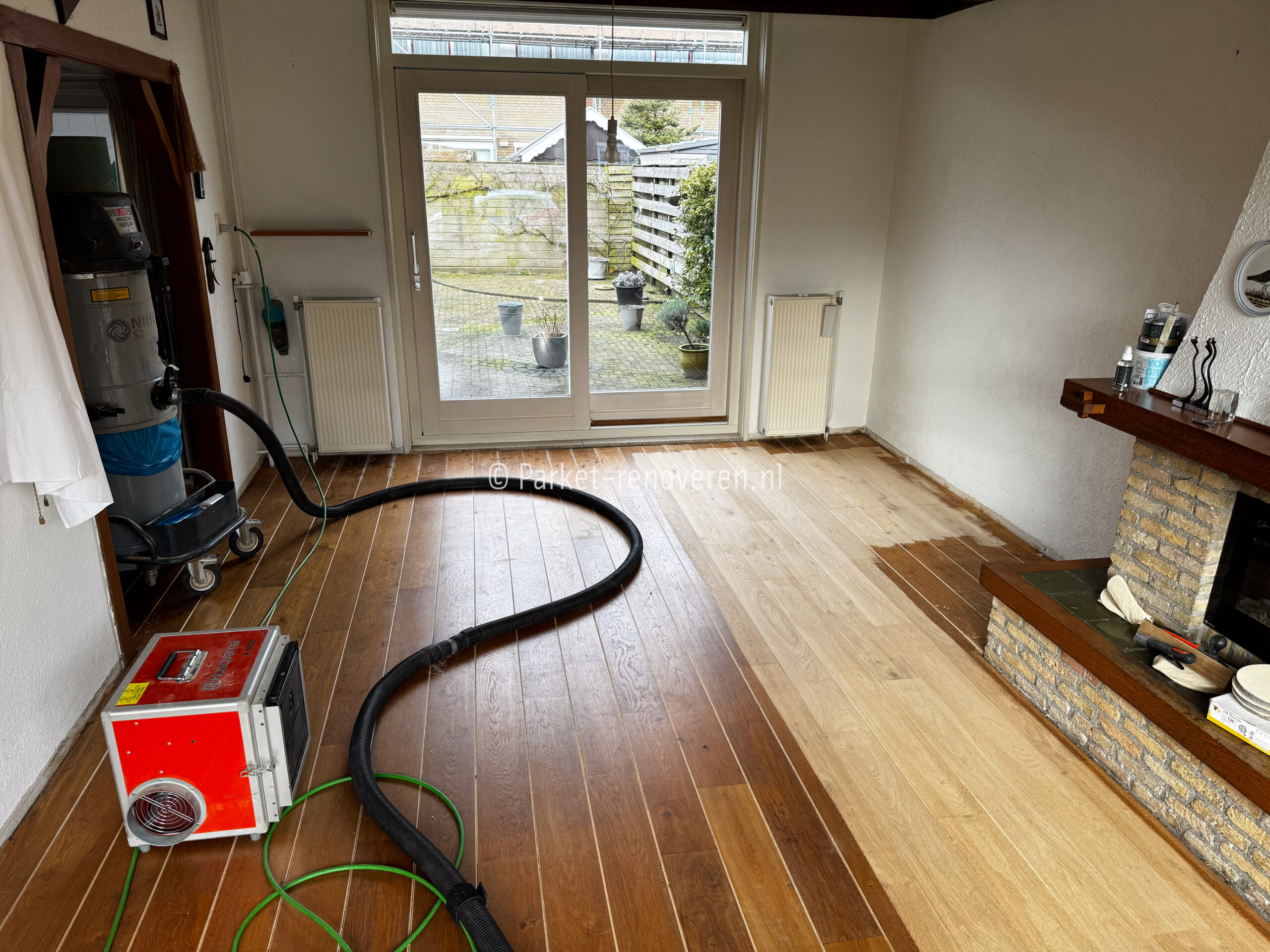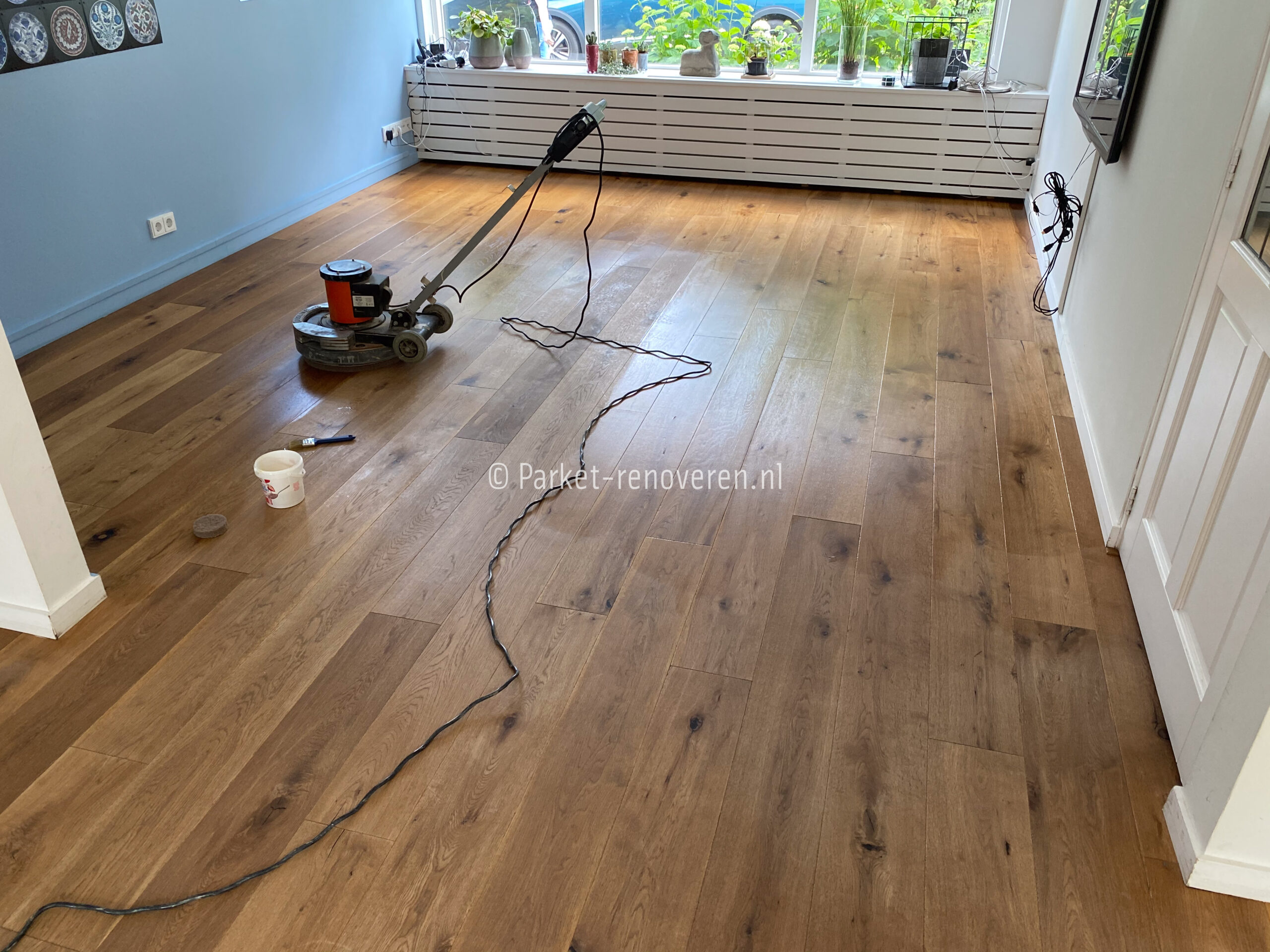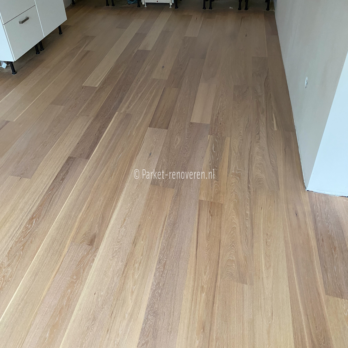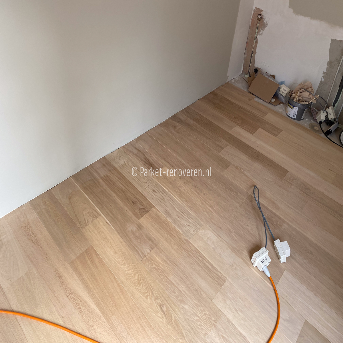 Bij schuren en oliën brengen we de natuurlijke schoonheid van het hout opnieuw tot leven. Na het schuren behandelen we de vloer met een hoogwaardige olie die diep in het hout dringt en het beschermt van binnenuit. Dit zorgt voor een warme, matte uitstraling en eenvoudig onderhoud.