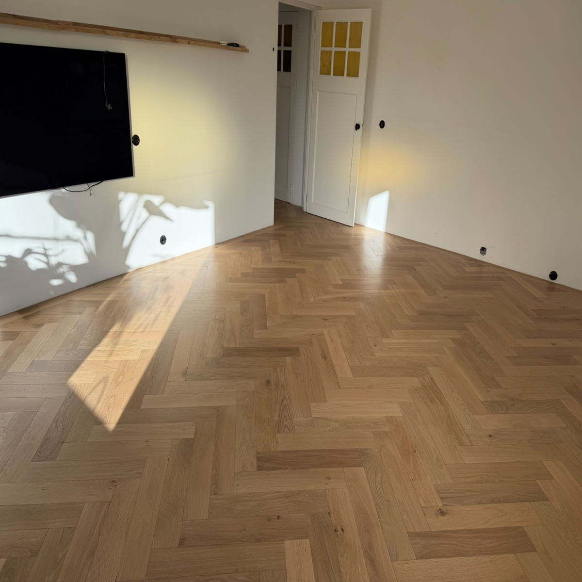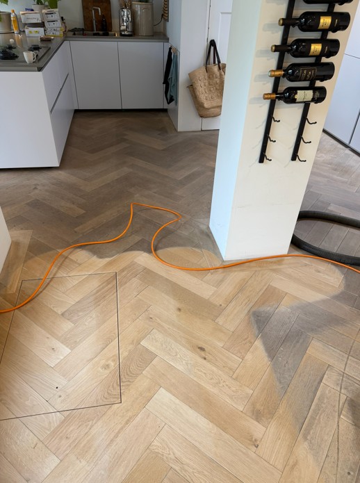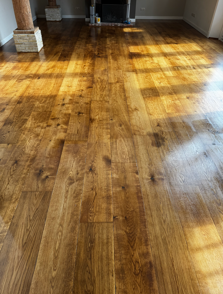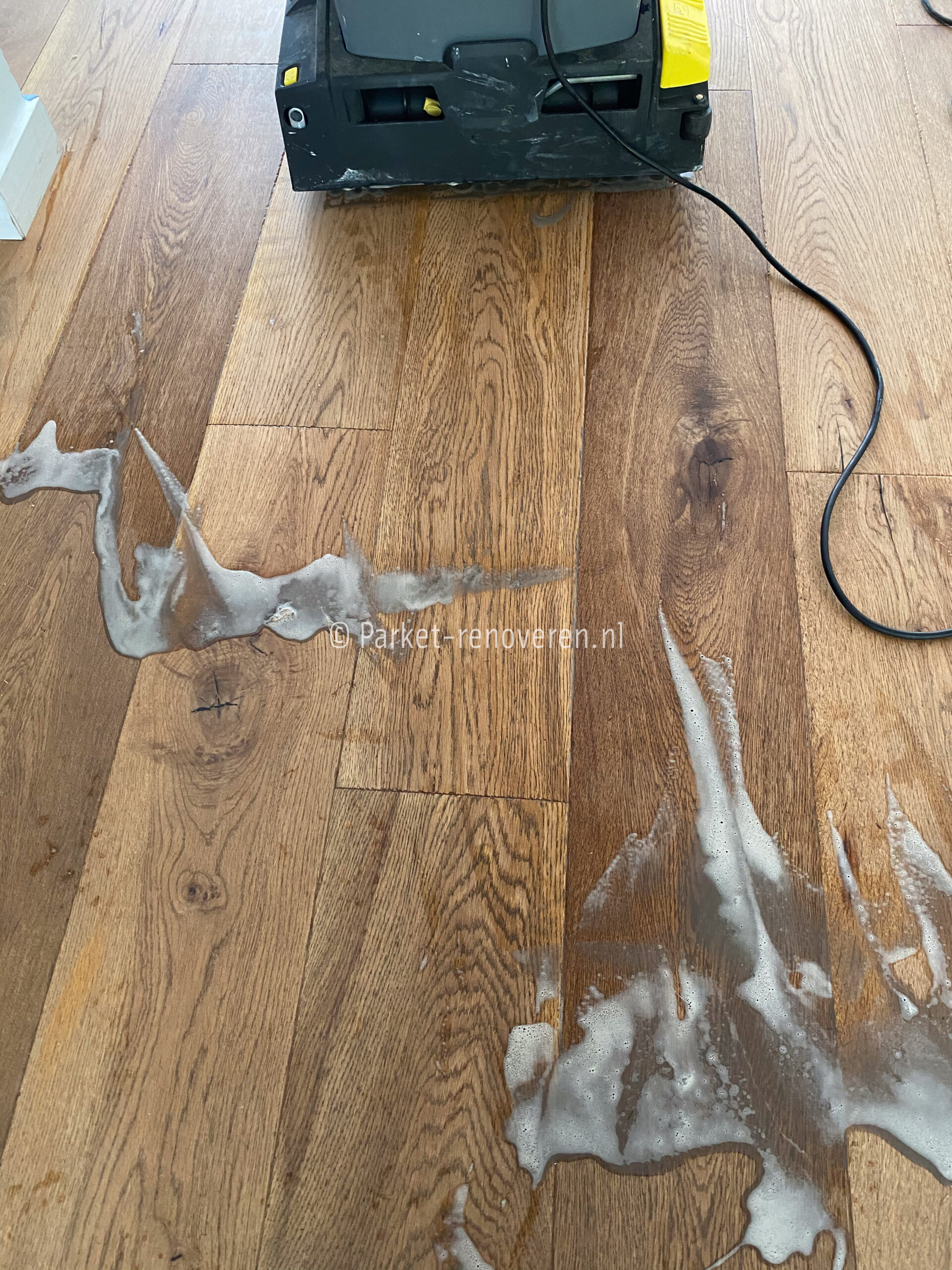 Onze deepclean-behandeling is ideaal wanneer uw parket niet volledig aan vervanging toe is, maar wel een grondige opfrisbeurt nodig heeft. Met professionele reinigings- en onderhoudsproducten verwijderen we diep vuil en oude zeep- of vetlagen. Uw vloer krijgt zijn oorspronkelijke glans en kleur terug — zonder te hoeven schuren.